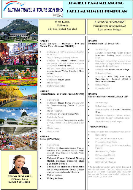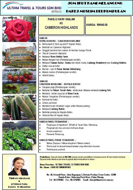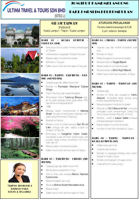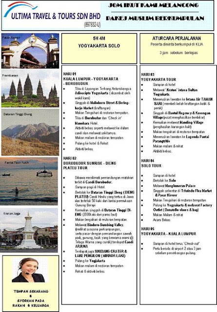 Anda ingin tenangkan fikiran dengan percutian yang menyeronokkan serta menarik ? Ingin bercuti bersama yang tersayang ? Inginkan harga yang berpatutan ? Pakej yang menarik ? Terjaga solat, makan dan bagaikan satu keluarga ? Alaminya bersama kami ULTIMA TRAVEL & TOURS ada menawarkan pakej percutian yang menarik .
